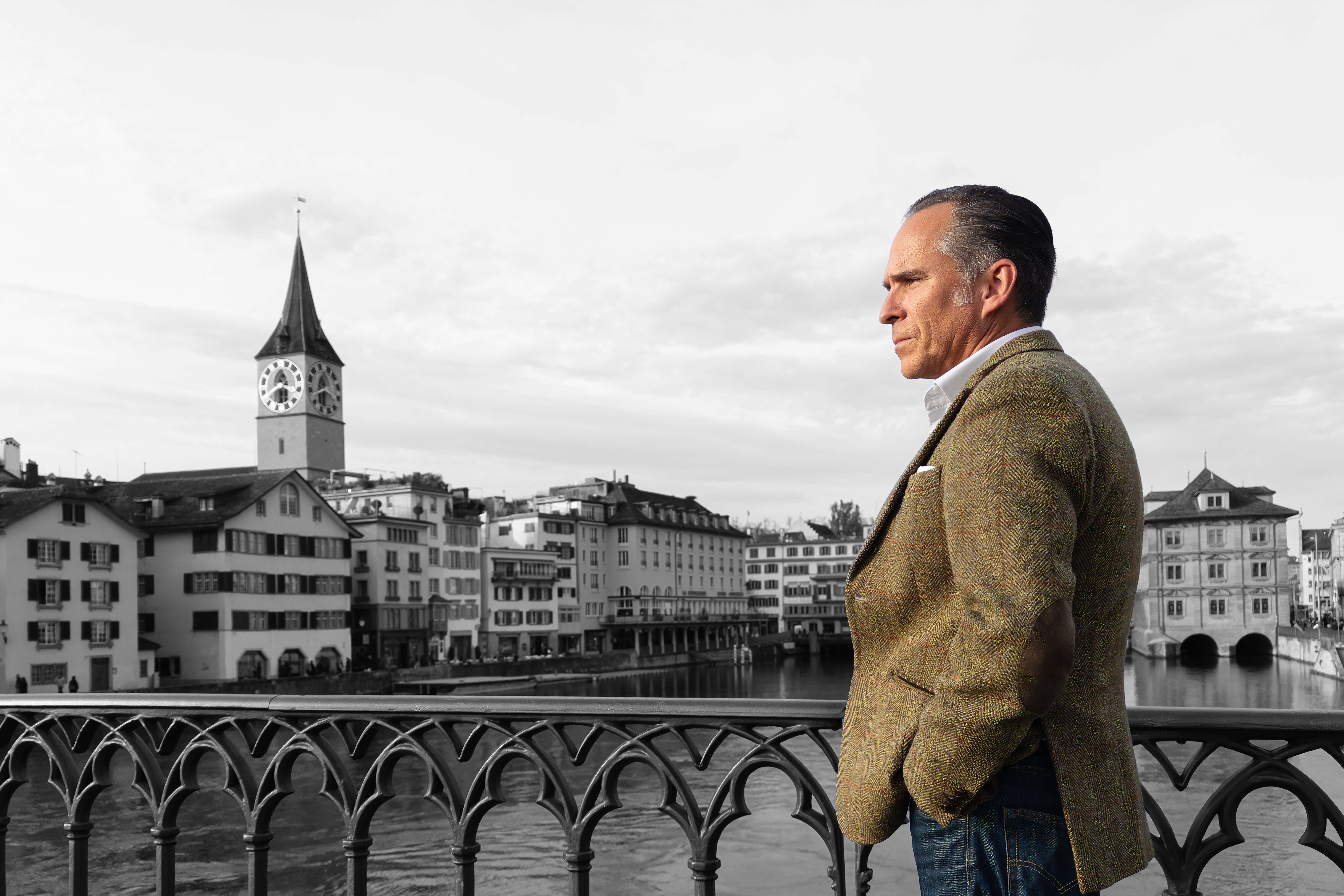 Als unser Gespräch endet, senkt sich der Abend über Zürich. Aus der legendären Café Bar Odeon fällt warmes Licht auf nassen Asphalt, die Limmat glimmt im Dunst wie ein Atemzug aus Metall und Nebel.