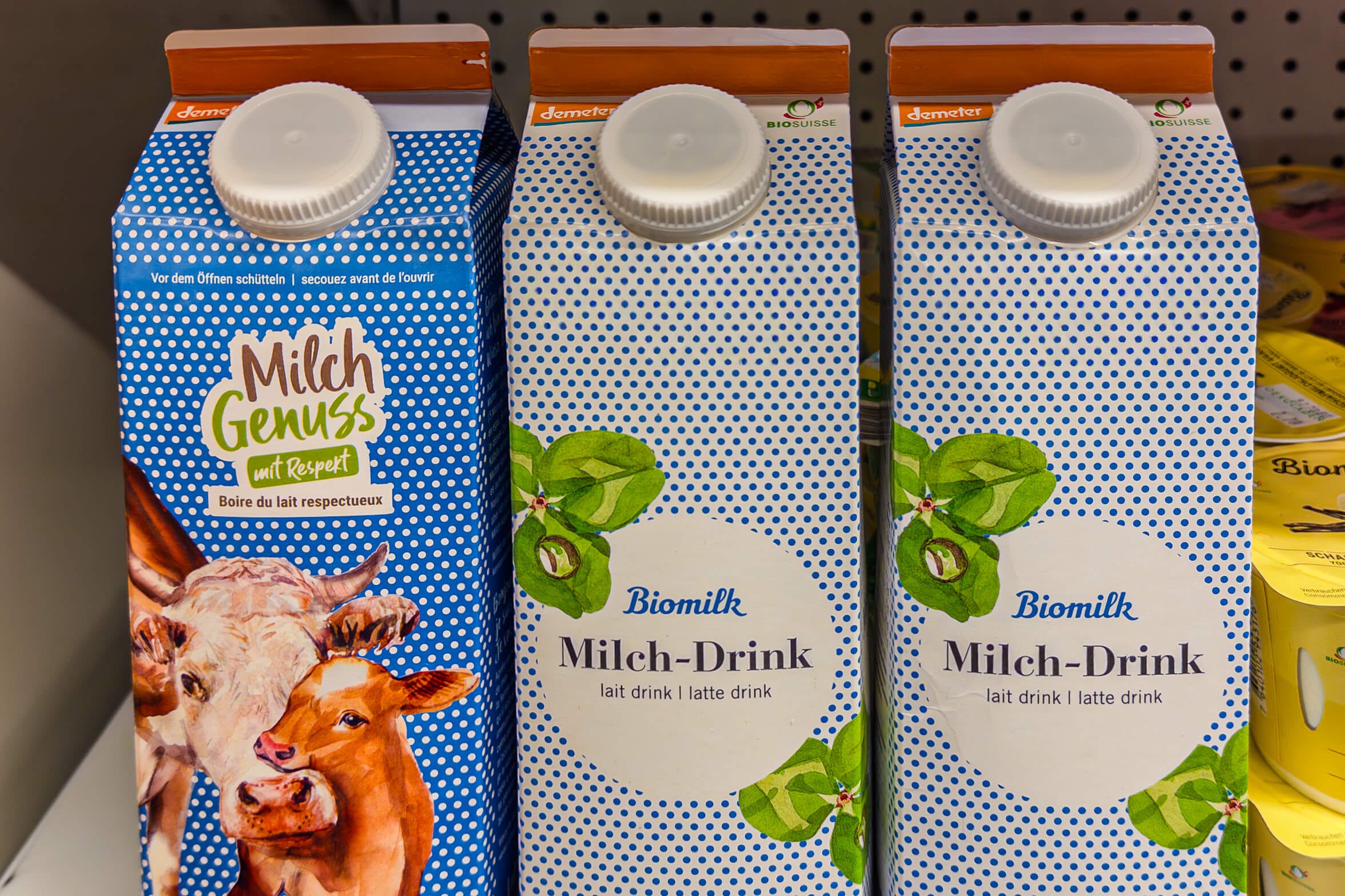 🇨🇭 Schweiz: Pasteurisierte Vollmilch, dahinter fettarme Milch in städtischen Gebieten und hoher UHT-Anteil in ländlichen Gebieten.