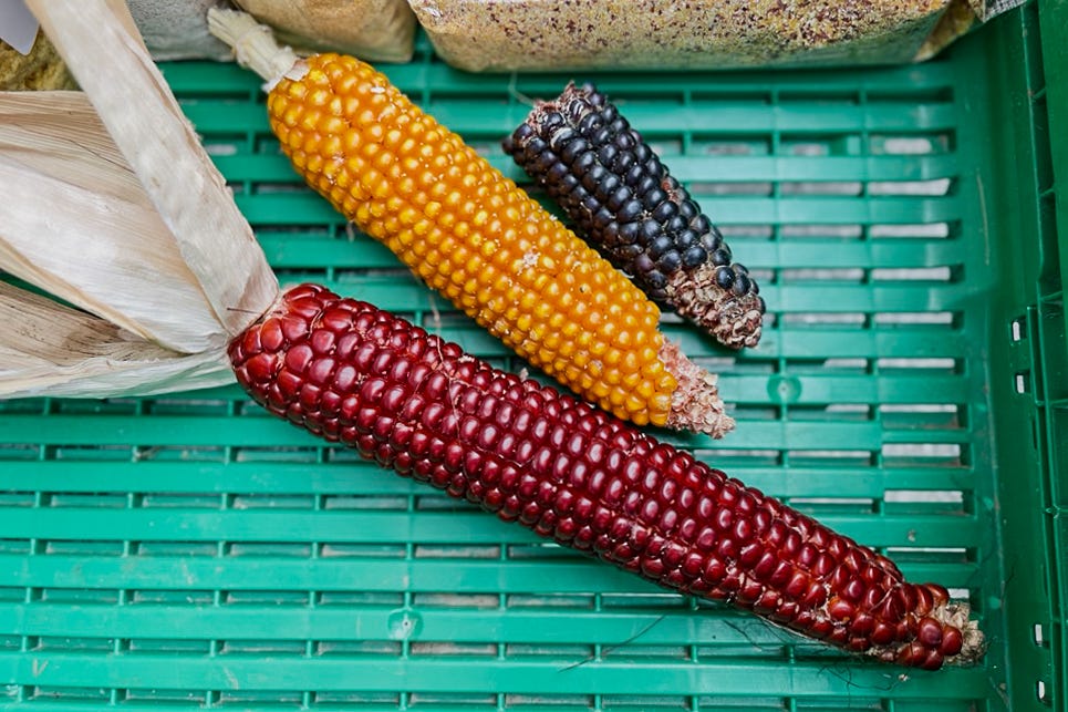 Von den über 200 Mais-Sorten pflegt Bassetti die traditionellen Tessiner Sorten. Diese bieten bei den Körnern und infolge dessen auch im Geschmack eine grosse (Farb-)Palette an:
